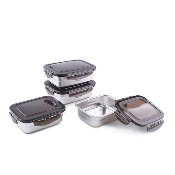 쿠키브라운 스테인리스 밀폐용기 사각 4종(8p)